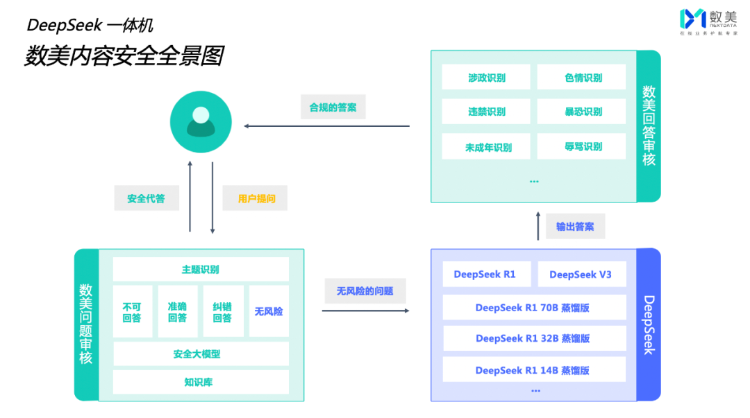 DeepSeek一体机内容安全产品组件:随着DeepSeek一体机的出现,数美科技结合AIGC行业100+厂商的服务经验,推出DeepSeek一体机内容安全产品组件,提供实时的风险内容检测,将内容安全能力与硬件架构原生融合,为DeepSeek一体机构建内生式的防护系统。这也是行业内首个深度融合“端云协同+国产化全栈适配”的内容安全产品。