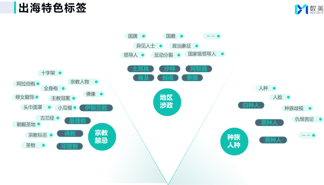 (3)海外特色标签:多年的行业数据积累,以及对海外各地政策的研究和解读,数美建立了一套覆盖全面、地区特色鲜明的内容审核标签体系,如宗教文化、种族人群等根据地区文化、所在地法规进行自由调节,自主定义审核策略。
