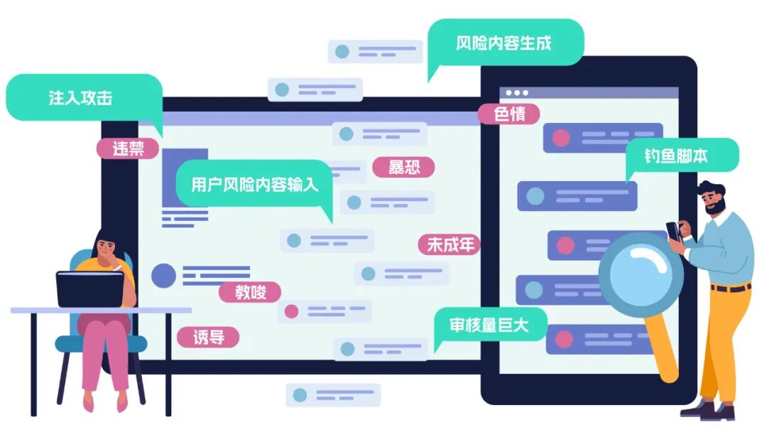 此外,随着用户量的剧增,生产的内容直接开启“狂飙”模式,内容审核压力爆表。除了大家熟知的暴恐、色情、违禁等常见违规信息,还会有黑产利用大模型生成一堆钓鱼脚本,文案写得比正规客服还 "正规";伪造的图片视频更是以假乱真,而且他们玩的是 "批量攻击",一次能甩出成千上万条诈骗信息,就像撒网捕鱼一样, 一些电商、社交平台的评论区更是黑话暗号防不胜防,属实考验阅读理解能力。