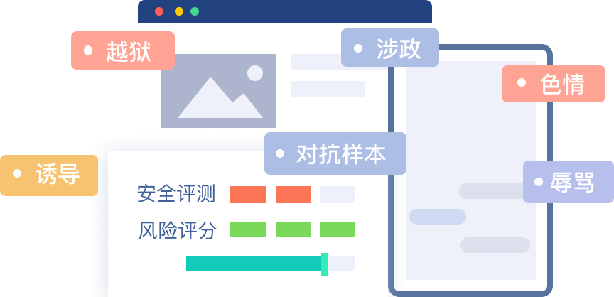 在AIGC模型或应用发布前,进行针对诱导性、越狱、对抗样本等多维度的安全打分与诊断